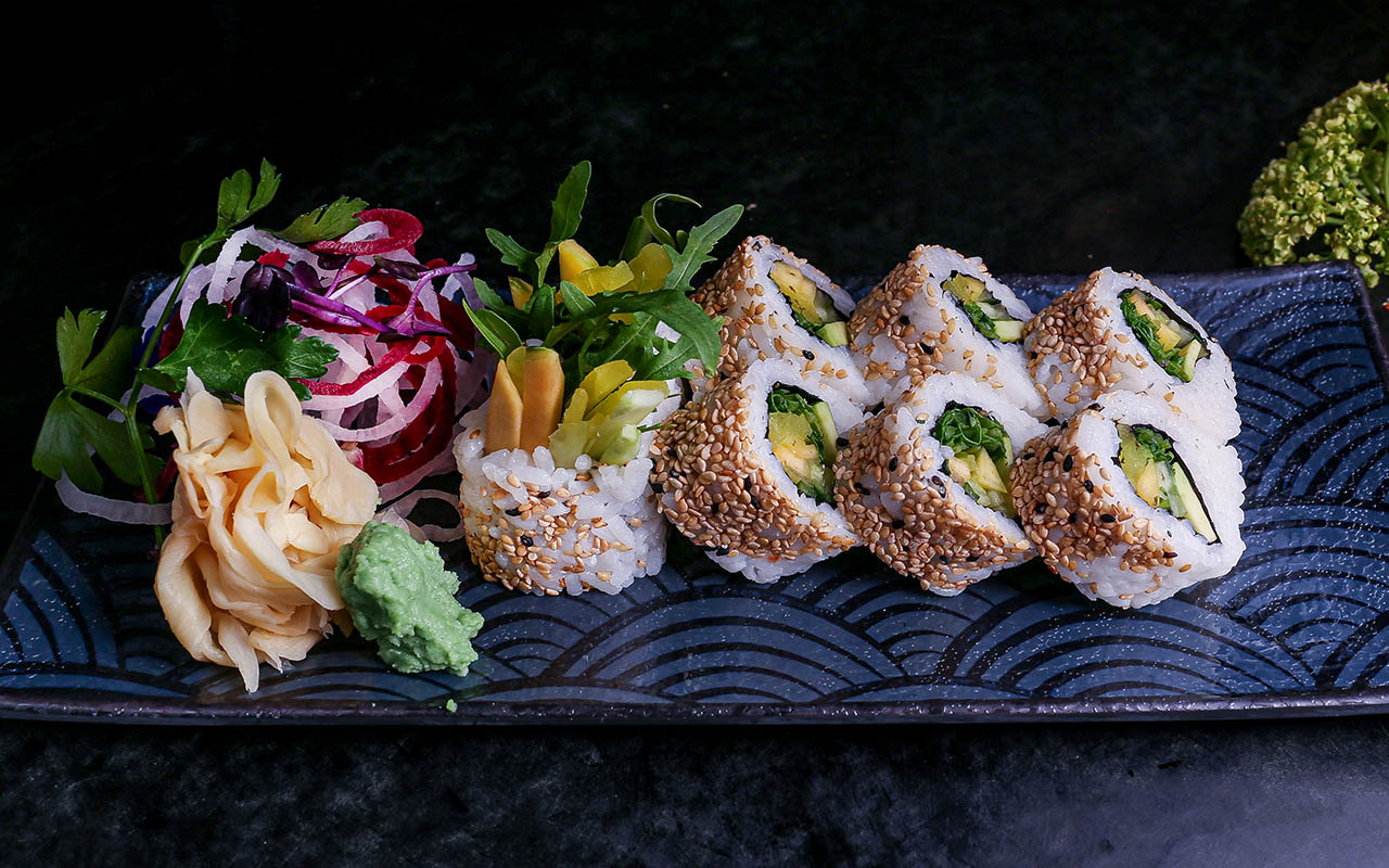 Avocado, cucumber, and creamy Philadelphia cheese, wrapped in roasted sesame seeds.